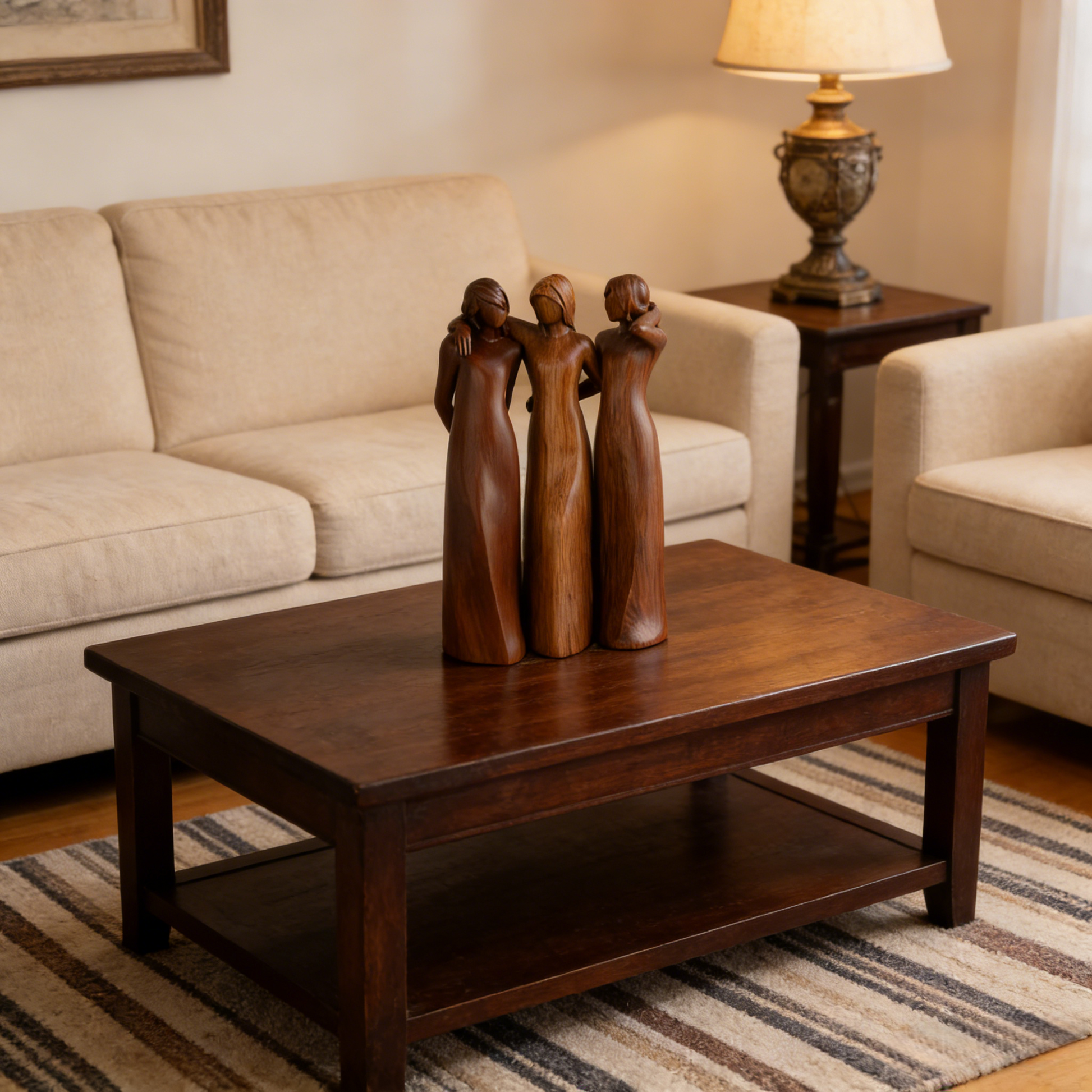 This hand-carved sculpture celebrates the quiet, unshakable love between women—sisters, best friends, mothers, daughters, or the family we choose along the way.Each figure stands close, shoulders touching, arms intertwined, capturing those moments when words aren’t needed… because love is understood in silence.